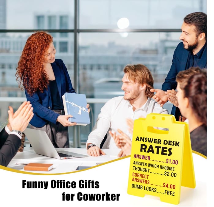 Funny Gift for Coworker: The “Answer Desk Rates” desk sign and office decor humor are sure to add fun and laughter to any space! This funny office decor is the perfect humorous touch to your office.