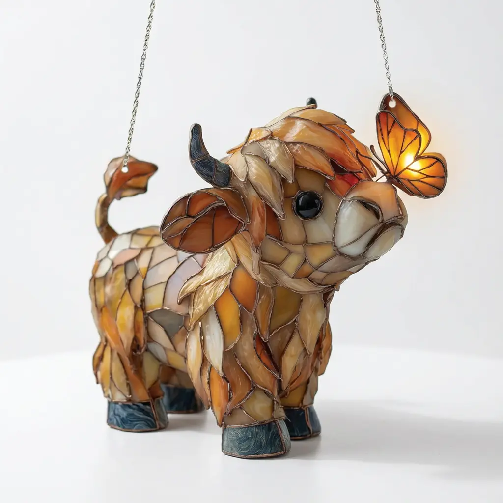🦋 New & Limited | Handcrafted Highland Cow Suncatcher with Butterfly – Artisan Window Decor